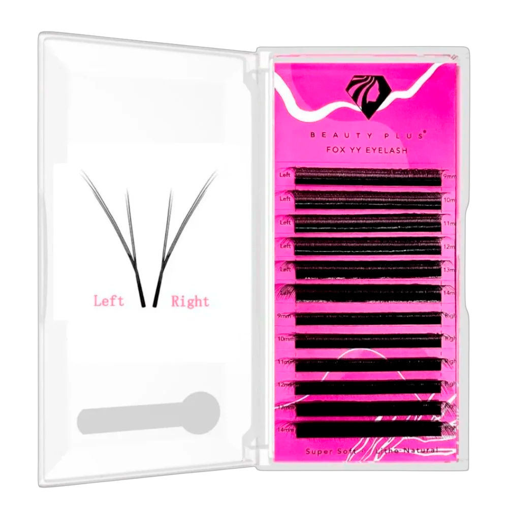 Las Fox YY Eyelash de Beauty Plus en curvatura D, grosor 0.07 y longitudes mix de 9 mm a 14 mm, están diseñadas para crear un efecto voluminoso y definido con una apariencia ligera y esponjosa.